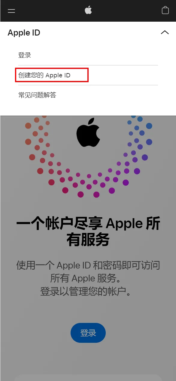 进入 Apple 官网来 “创建您的 Apple ID”