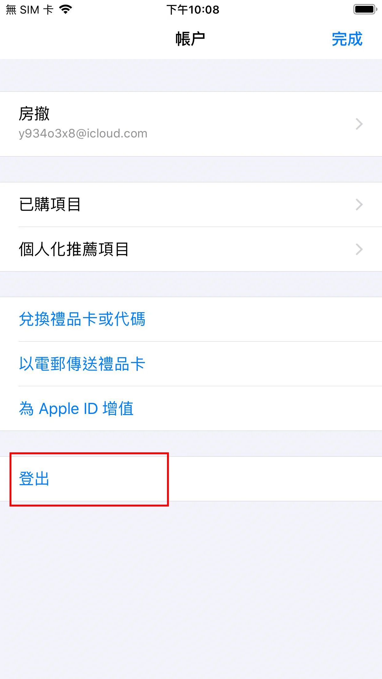 選擇 “登出” 按鈕,記得一定要滑到頁面底部才能看到這個按鈕。